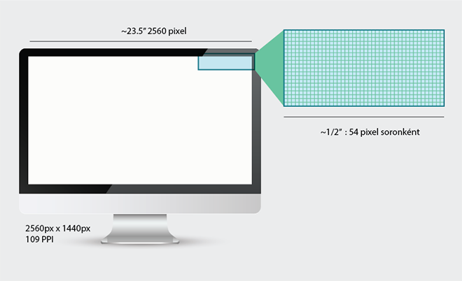 *Tudom, hogy 23.5*109 nem pontosan 2560. Valójában csak 23.486238532 hüvelyk. Pontosabb lenne pixel per centiméterben megadni, de a lényeg azért érthető.