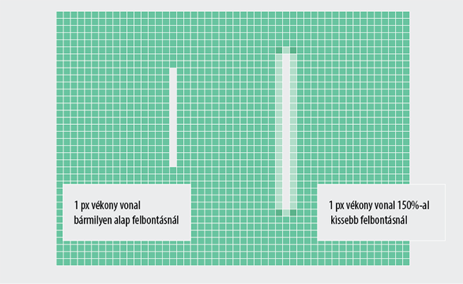 Nézzük meg az alábbi példát is. Vegyünk egy 1px csíkot egy natív felbontású képernyőn. Most vegyünk egy 50%-al kisebb felbontást. A képernyő betöltéséhez a CPU 150% képet / látványt kell, hogy generáljon, mindent megszorozva 1,5-el. 1*1,5=1,5, de fél pixel nem létezik. Ilyenkor az történik,. hogy ha a környező pixeleket kitöltjük a szín töredékével, az homályos lesz.