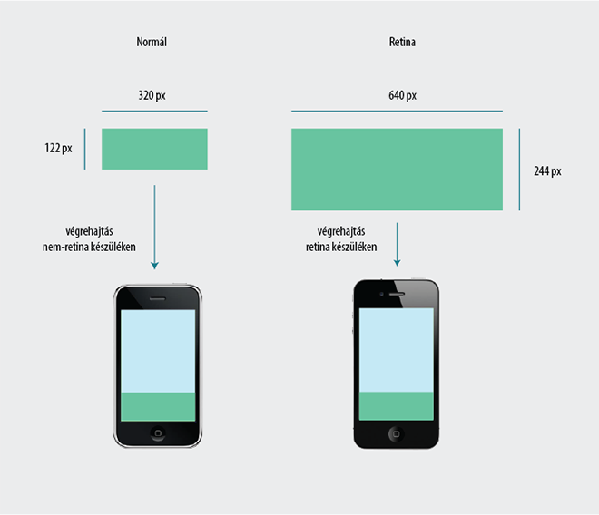 Vegyük például az Phone 3G és 4 készülékeket. Ugyanabban a fizikai méretben kétszer annyi pixel van. Így a szorzónk kettő. Ez azt jelenti, hogy ahhoz, hogy az adott készülék kompatibilis legyen a 4G felbontással, nem kell mást tenni, mint a készülék méretét kettővel megszorozni és kész is van.