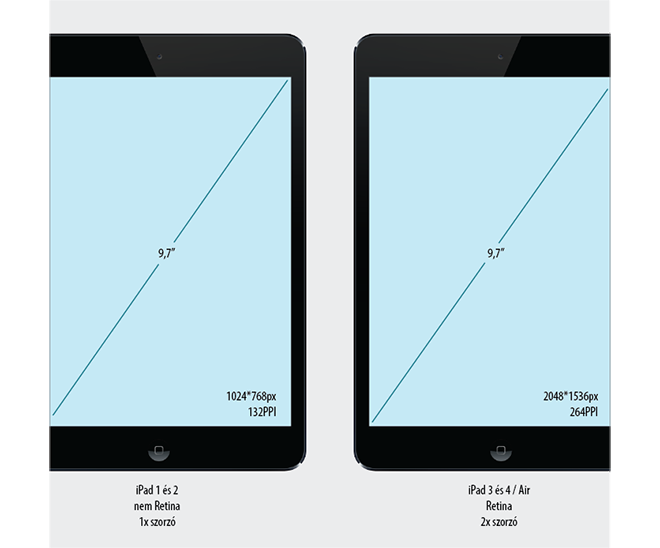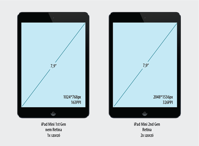Ha képernyő méretről és DPI-ről beszélünk, az iOS kétféle mobil készülékkel és 2 féle laptop/asztali gép képernyővel bír.