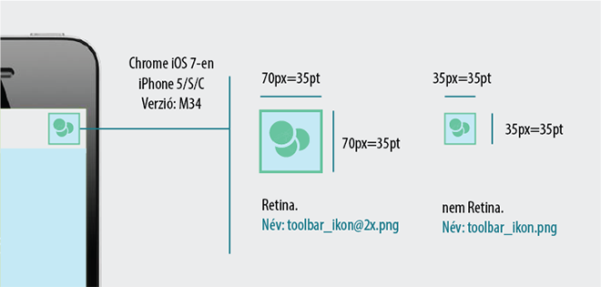 BUMM! Pont a kétszerese. Egyszerű szorzó. Így ahelyett, hogy kisebbek lettek volna, a képernyőn megjelenő elemek vizuálisan kétszer olyan élesek, hiszen kétszer annyi pixelből állnak, és méretükben pontosan egyezőek. Egy egyszerű 1 normál pixel= retina pixel, négyszer annyi pixel.