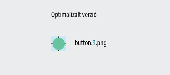 A 9-patch használata megkívánja, hogy illesze a .9 –t a névhez, olyan módon, ahogyan a @2x –t az iOS esetén. Nézzük az előbbi gomb példánkat ismét: