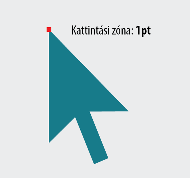 Az aktuális felületen látható piros zóna az, mellyel műveletet hajthatunk végre az UI-n. Elég pontos. Ugye érzi, mire célzok? Mi az, ami nem pontos? Az ujjunk.
