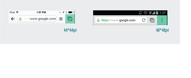 A Chrome így alkalmazza ezt. A kódolt érintési célok kékkel jelölve.